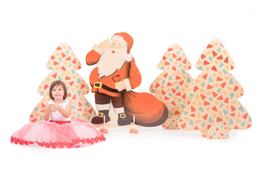 Обратите внимание на многофункциональность данной декорации: на обратной стороне изображен добрый леший (лесной эльф) с корзинкой шишек. Таким образом Вы сможете использовать декорацию не только на Рождество и Новый год, а и в других спектаклях! Шишки лесного эльфа являются съемными (на магнитах), что может быть интересно обыграно в детских праздничных постановках.