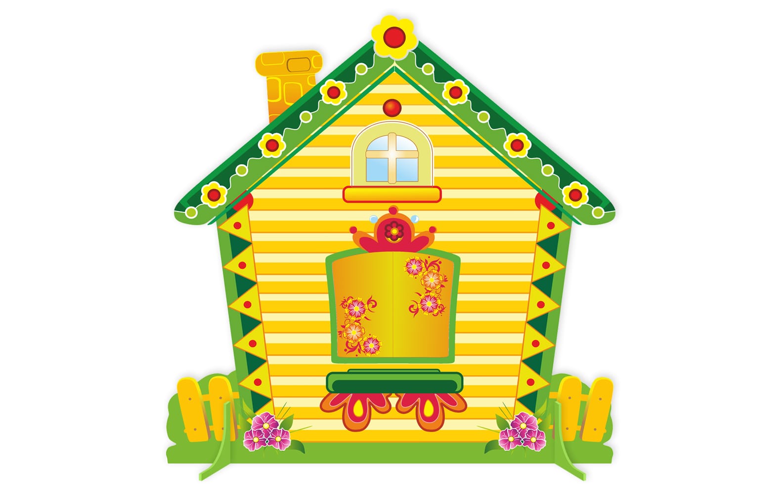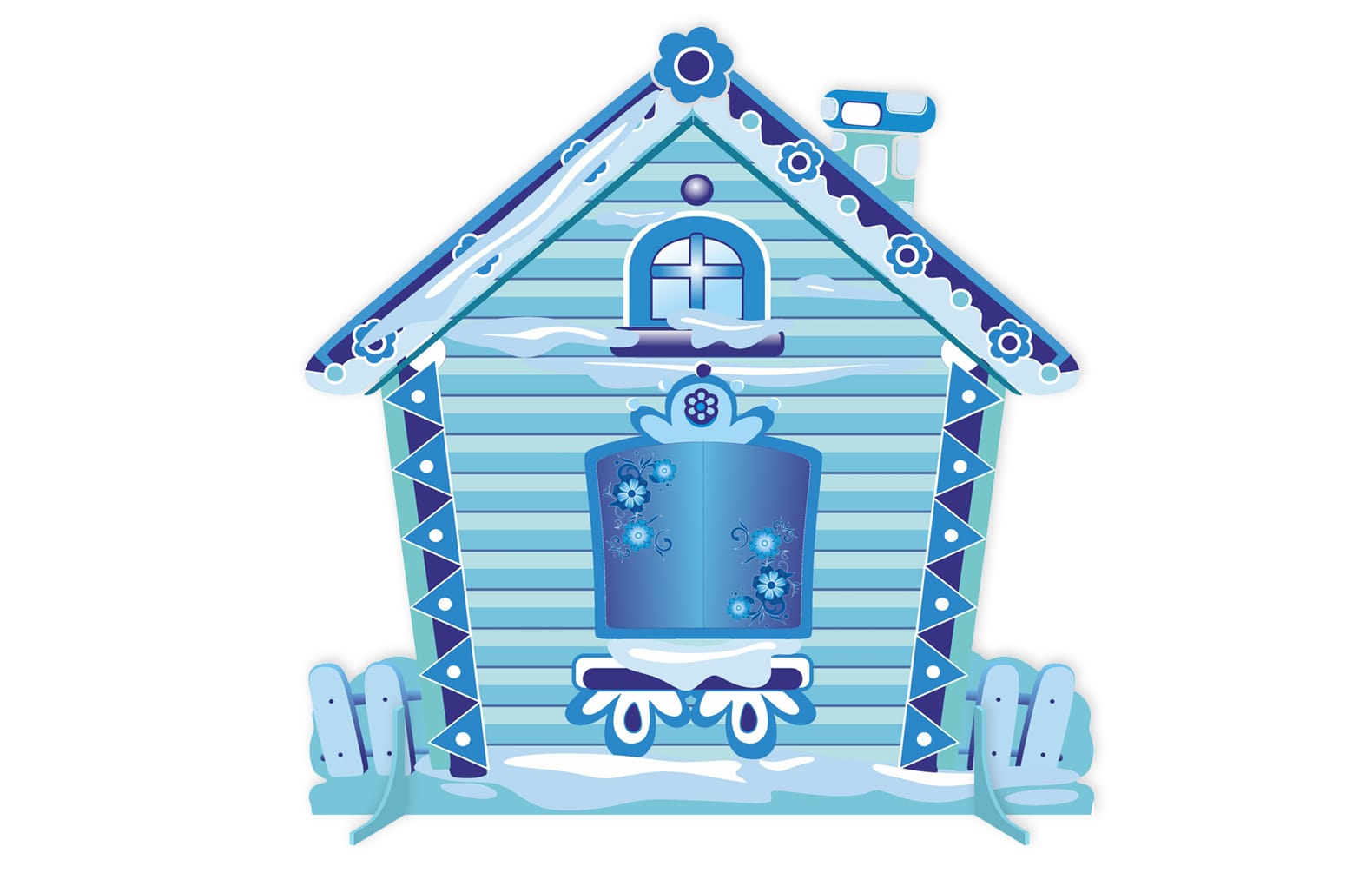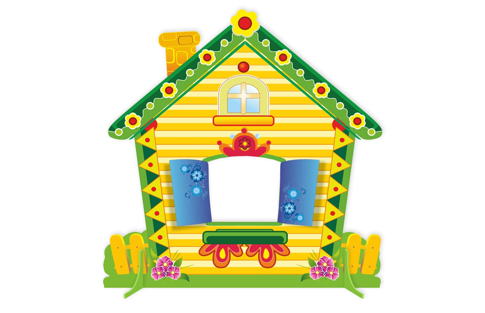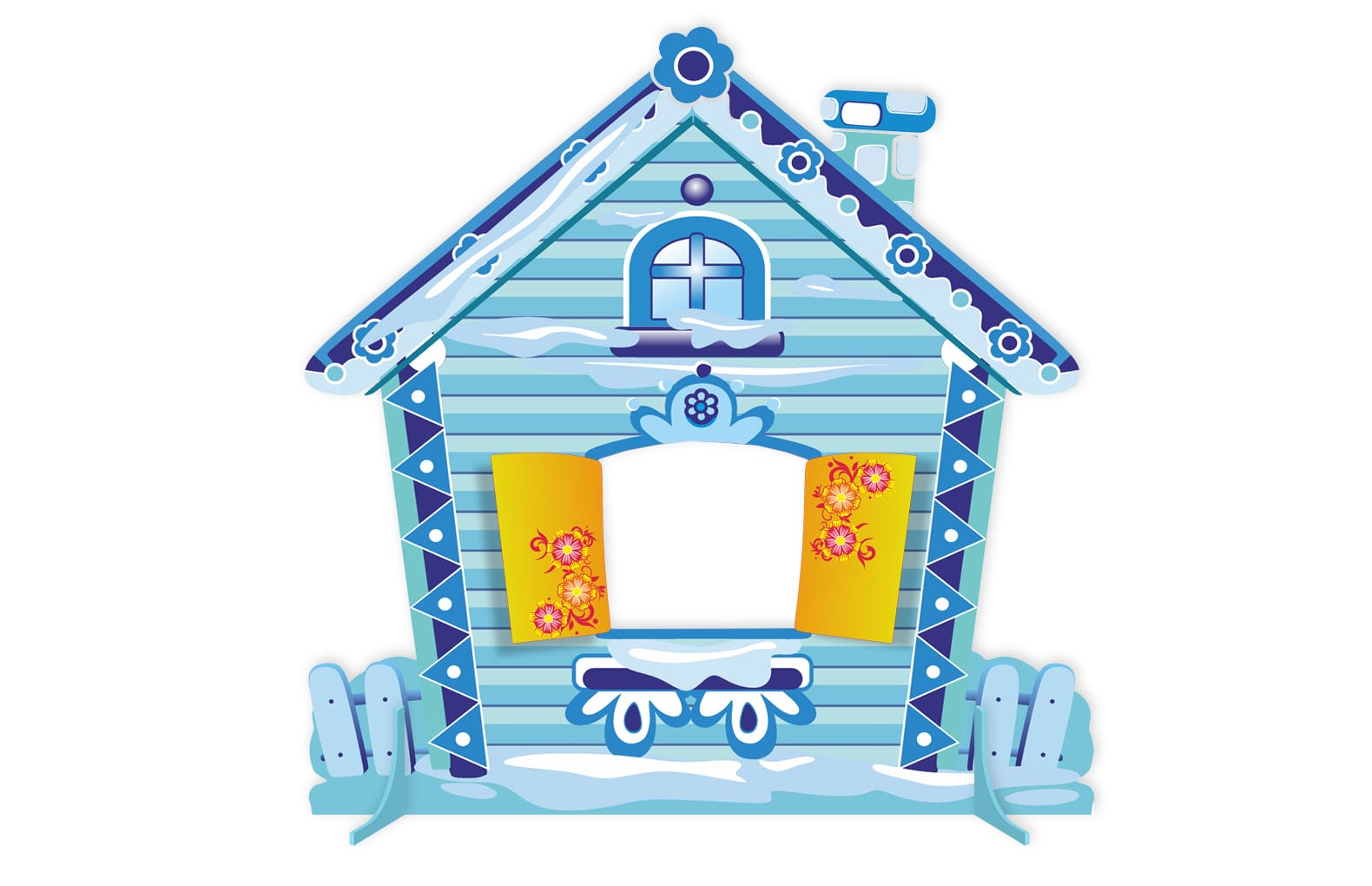 В комплекте:Двусторонняя мини-декорация "Теремок. Лето-Зима" , размеры Теремок 1150 мм х1150 мм, окно- 320 мм х 280 мм, подставки под декорацию