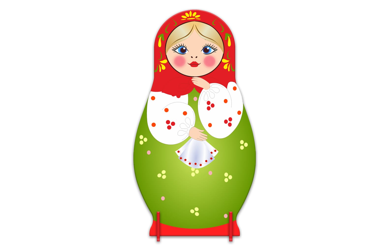 В комплекте:Двусторонняя напольная декорация "Матрешка", размер 65 см х 120 см, 32 подставки под декорацию