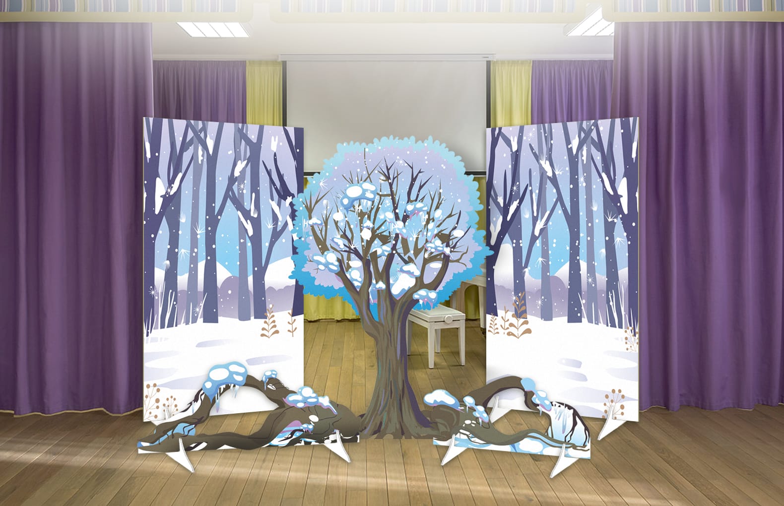 Наша коллекция декораций включает в себя зимние образы, созданные специально для утренников и театральных постановок.Кроме того, мы предлагаем декорации, соответствующие детским сказкам и праздникам. Дизайн декораций для утренников учитывает самые разные темы и предпочтения, а изменение размеров и цветового оформления делает каждую декорацию уникальной.