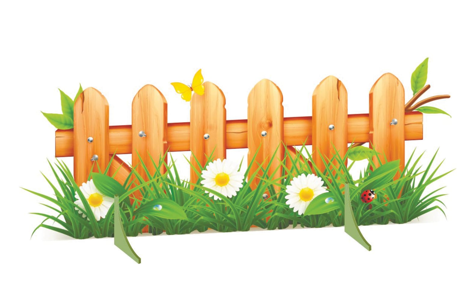 Размеры:Общий: 450х120см. Дом двухсторонний 170х115см, Дерево весна-лето 90х120см, Куст с ромашками 90х40см, Кустик с ромашками 46,5 х 32,2см, заборчик 100х38см.