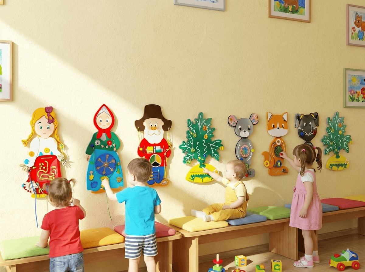 Набор бизибордов «Сказка Репка» — это интерактивная игровая среда, состоящая из семи тематических модулей. Каждая панель соответствует герою знаменитой русской сказки, что позволяет детям от 1 года до 7 лет не просто играть, но и глубоко погружаться в сюжет, запоминая всех персонажей и их последовательность.