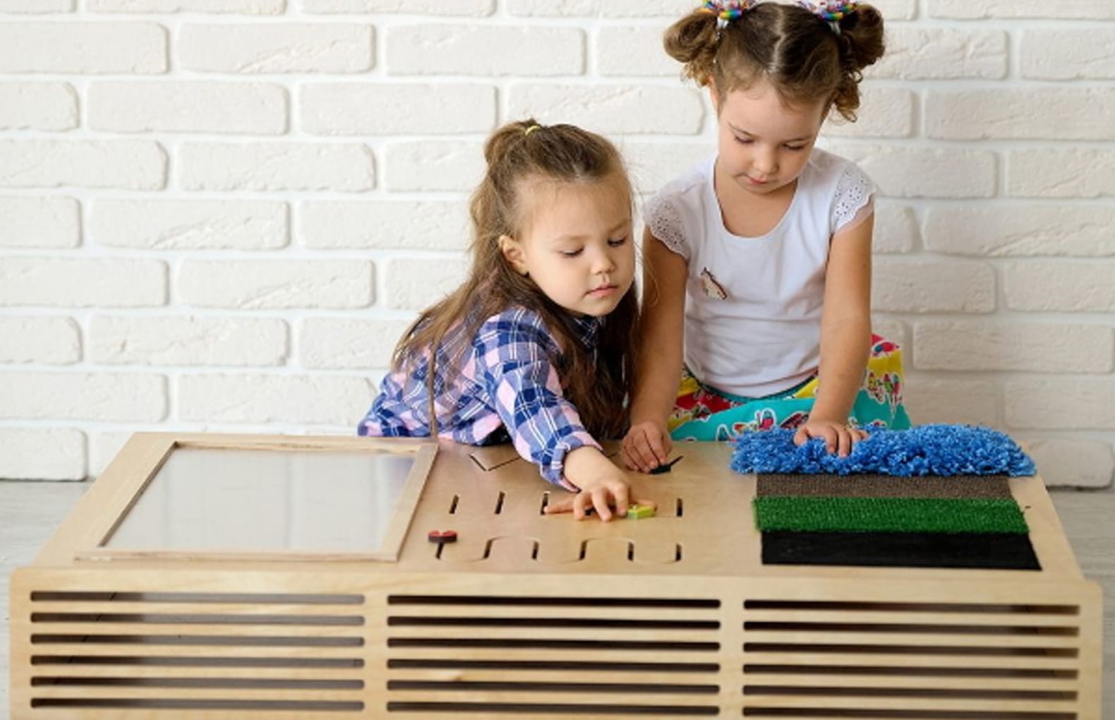 Тактильные вставки из ковролина четырех видов. Они отличаются длиной ворса, мягкостью, цветом.