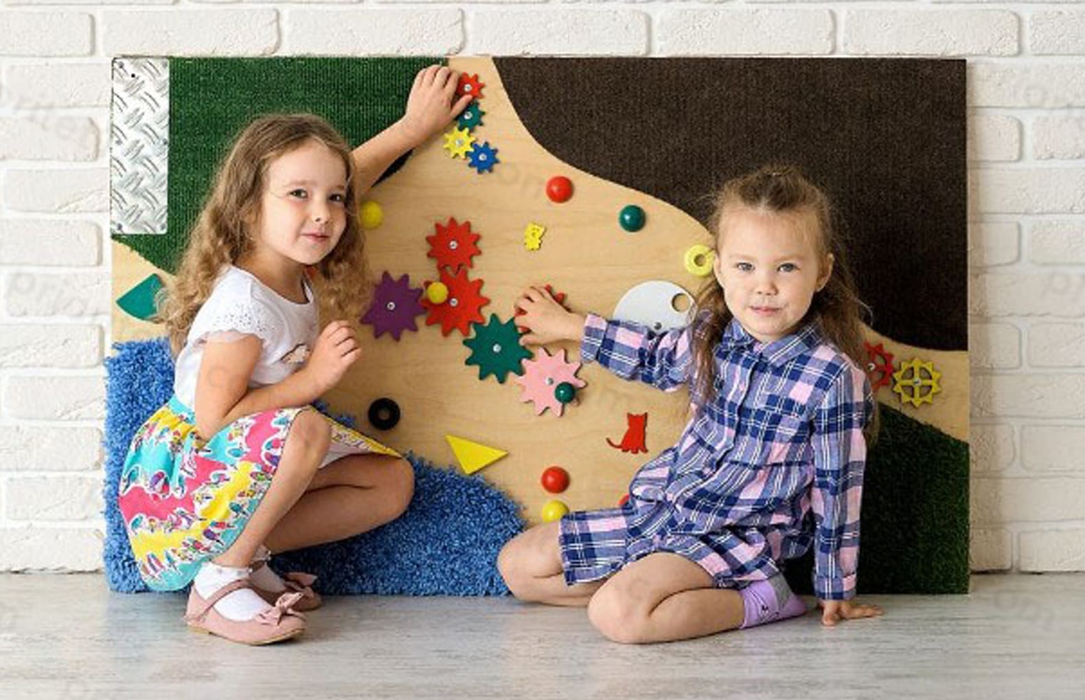 Доска предназначена для детей дошкольного возраста. Она особенно эффективна для слабовидящих детей, поэтому часто встречается в инклюзивных группах. На поверхности есть много интересных элементов, которые можно трогать, дергать, крутить, гладить. Некоторые детали – гладкие и холодные, другие – мягкие и теплые.