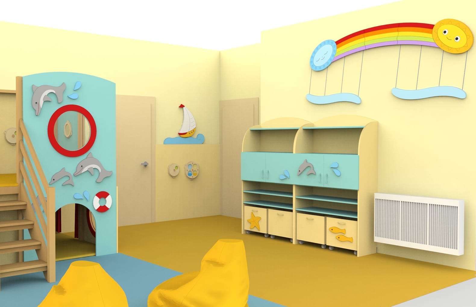 Обратите внимание на яркие декоративные элементы из дерева, окрашенного безопасной акриловой краской.