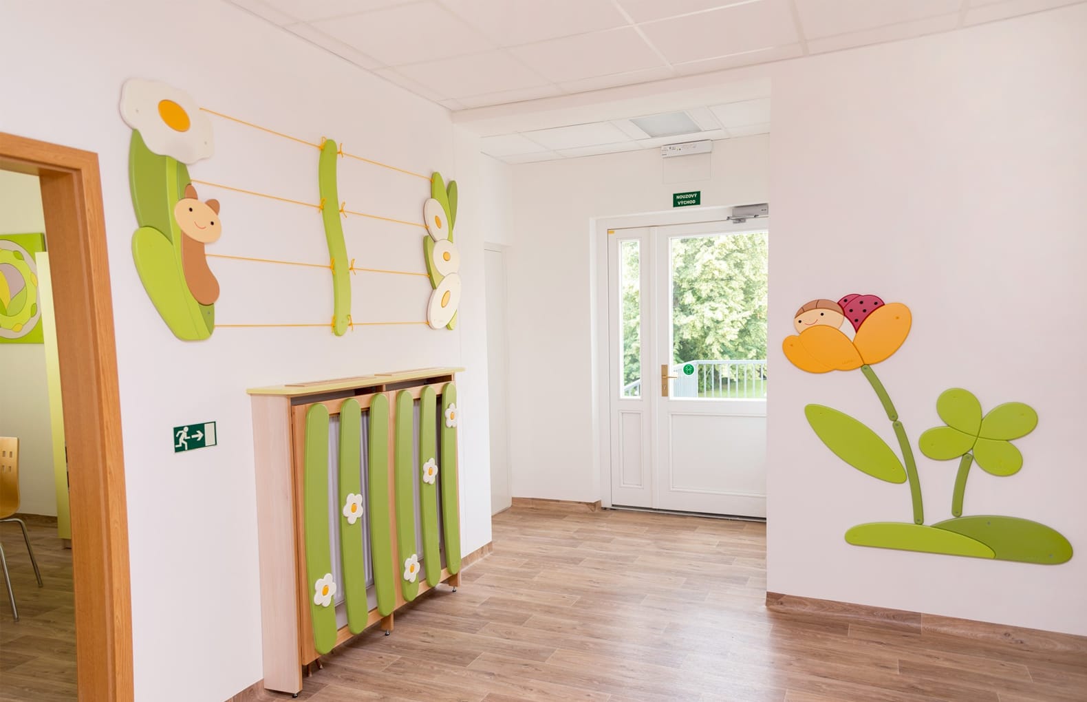 Обратите внимание на яркие декоративные элементы из дерева, окрашенного безопасной акриловой краской.