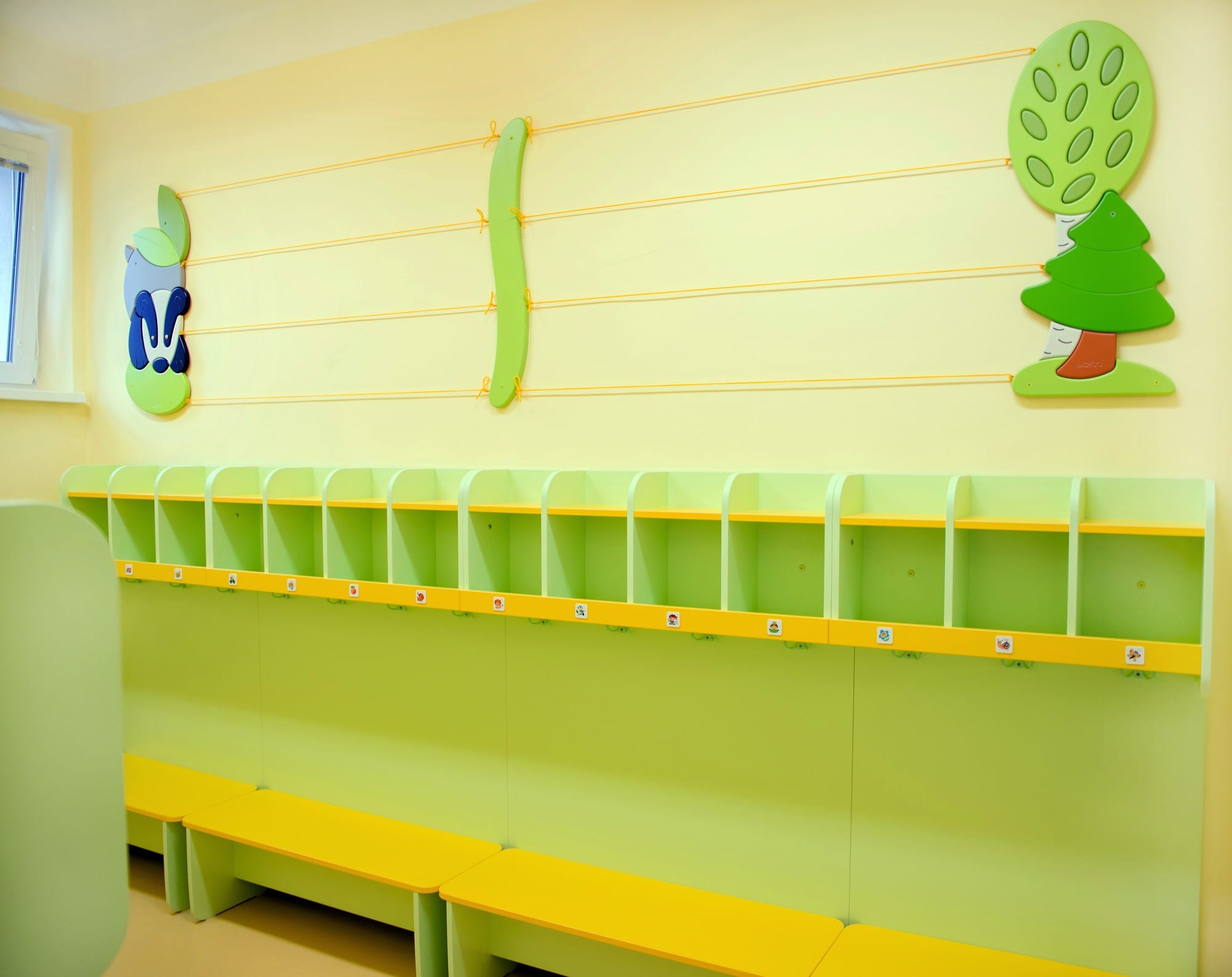 Рисунки и информация крепятся на элементы с помощью декоративных прищепок.