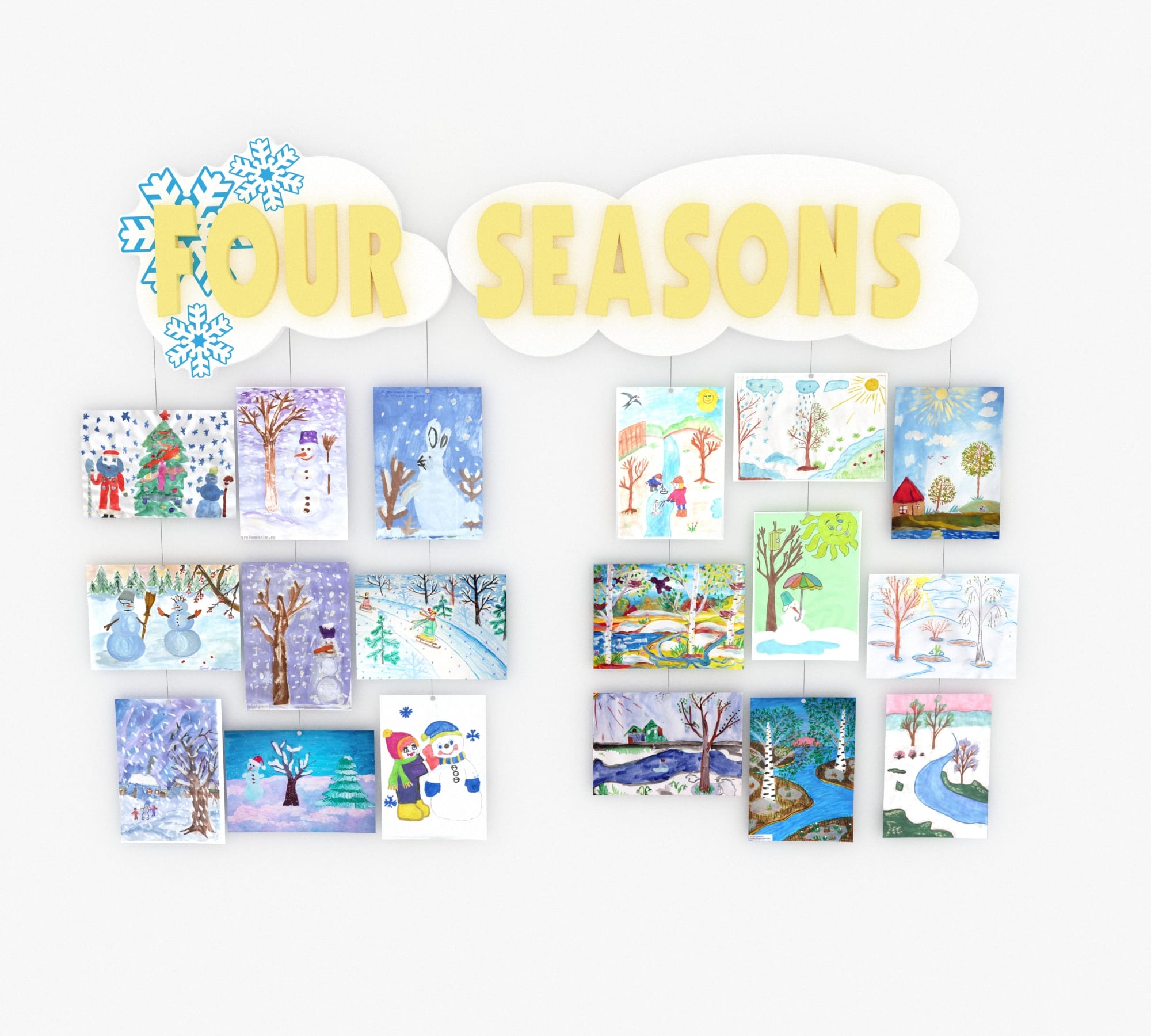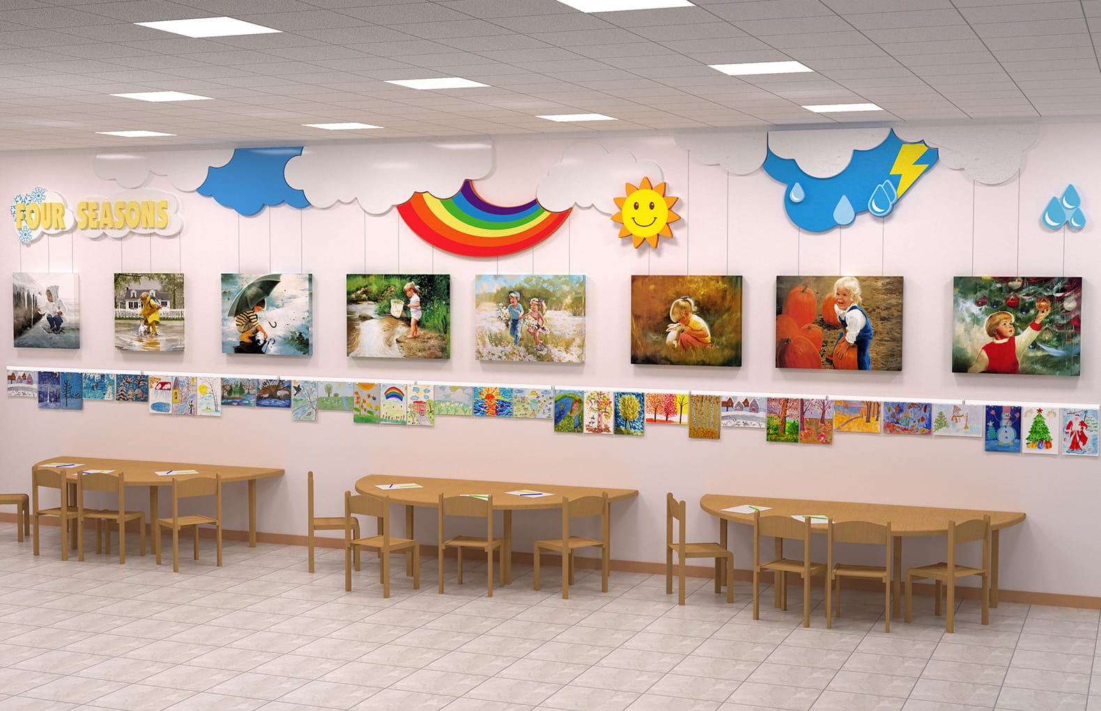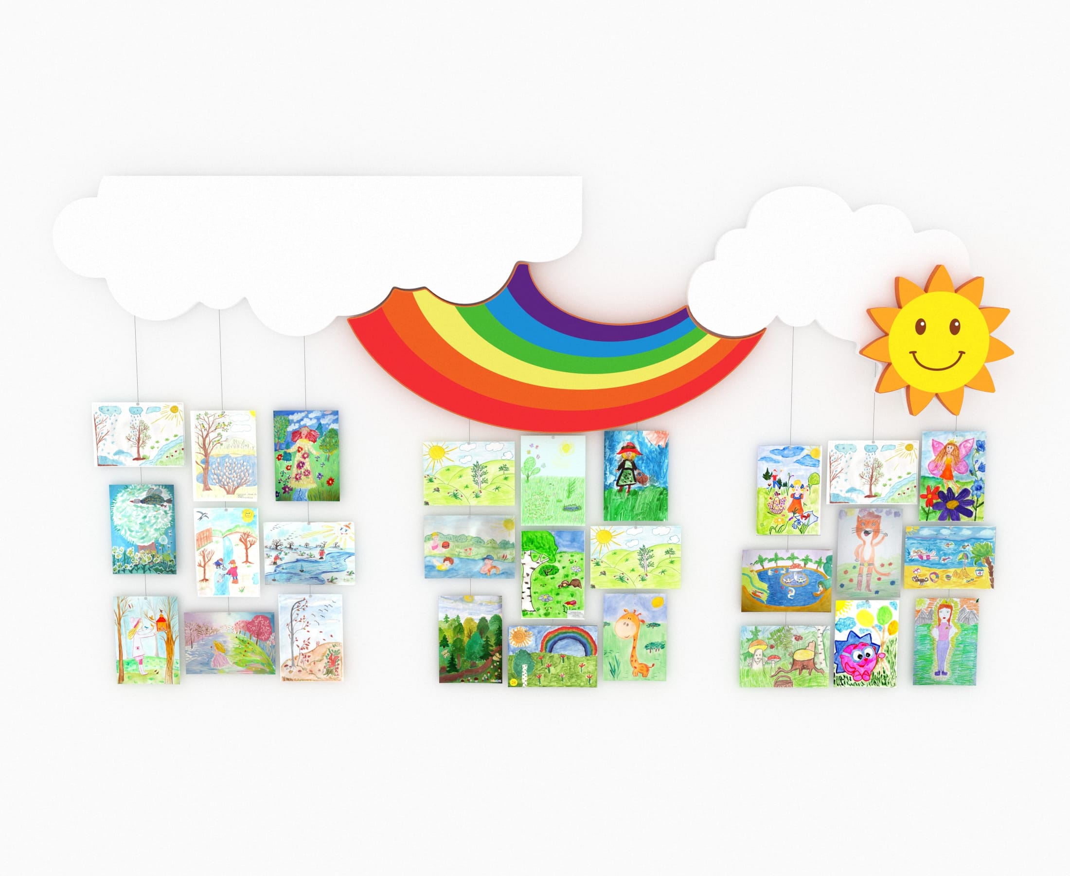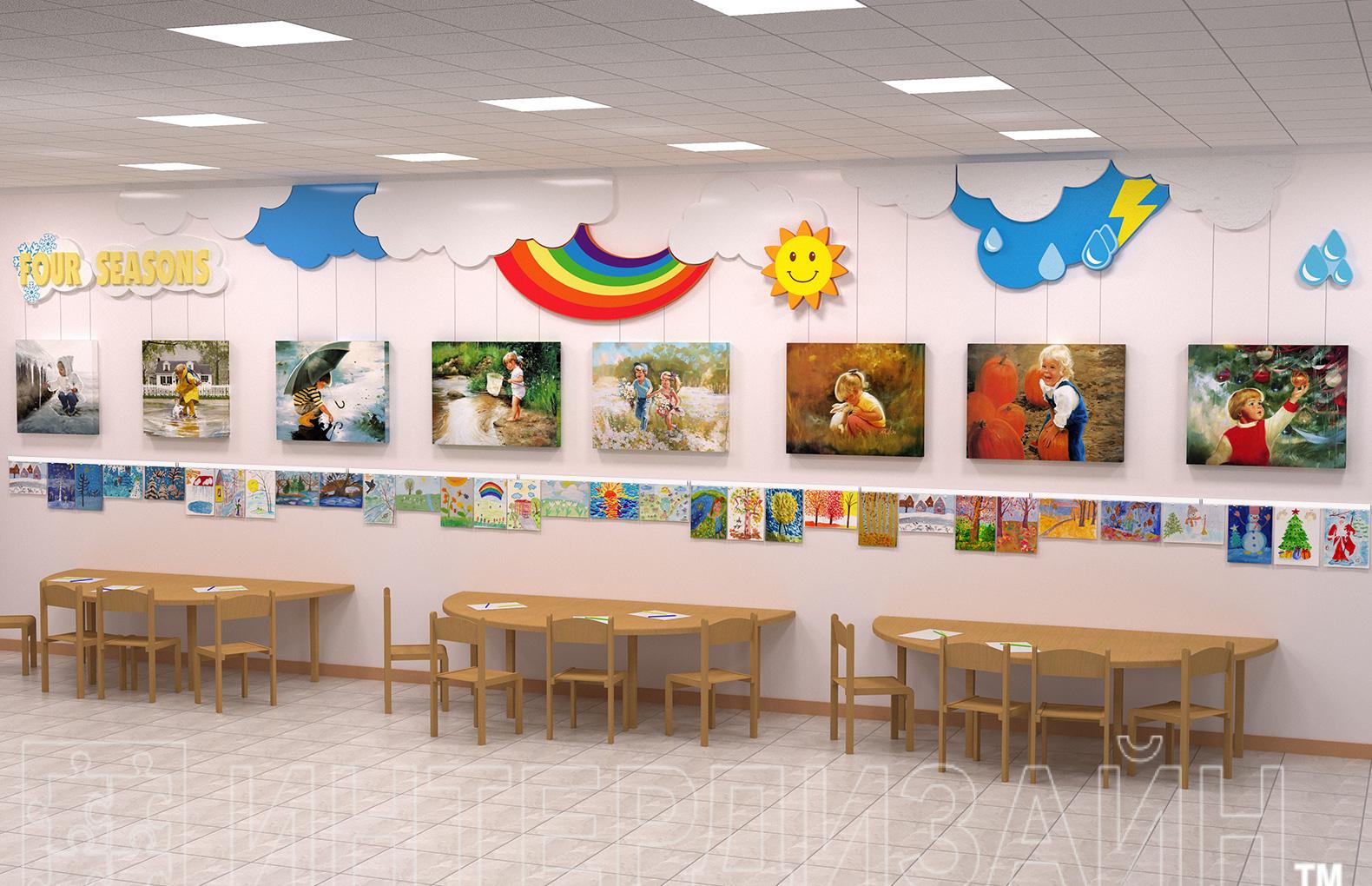 Вы можете организовать масштабную галерею детских рисунков, аппликаций, фотографий, анонсов мероприятий. Оформленная подобным образом галерея обязательно привлечет внимание любого посетителя и сформирует привлекательный образ школы или детского сада.