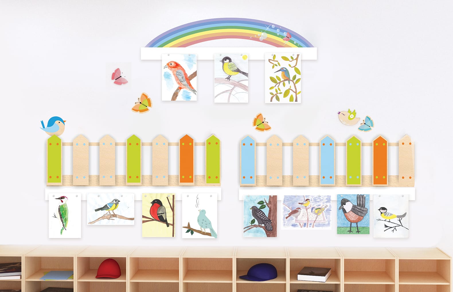Композиция предназначена для удобной и эстетичной организации выставки детских рисунков или размещения информации для родителей.