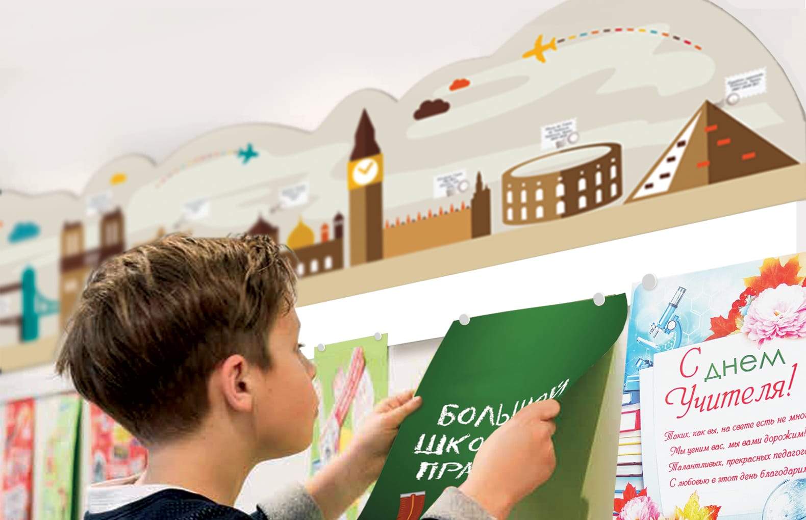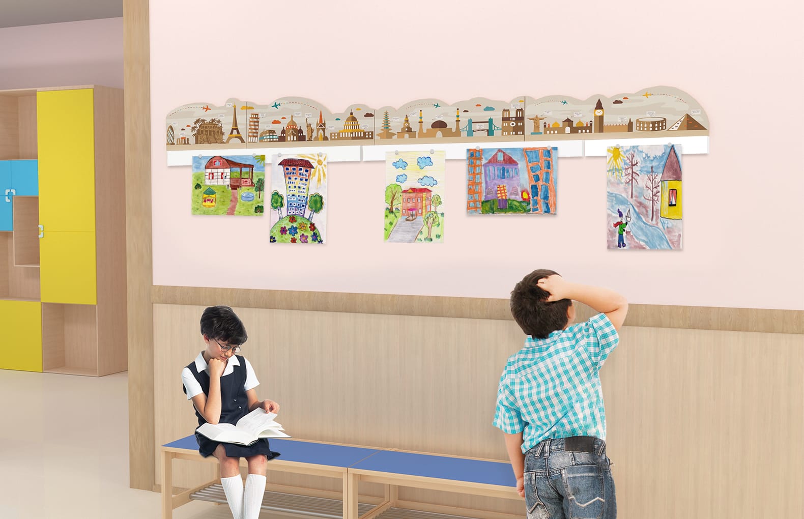 Вы можете организовать масштабную галерею детских рисунков, аппликаций, фотографий, анонсов мероприятий. Оформленная подобным образом галерея обязательно привлечет внимание любого посетителя и сформирует привлекательный образ школы, ВУЗа или детского сада. Вы сможете освободить стены от громоздких, устарелых стендов.