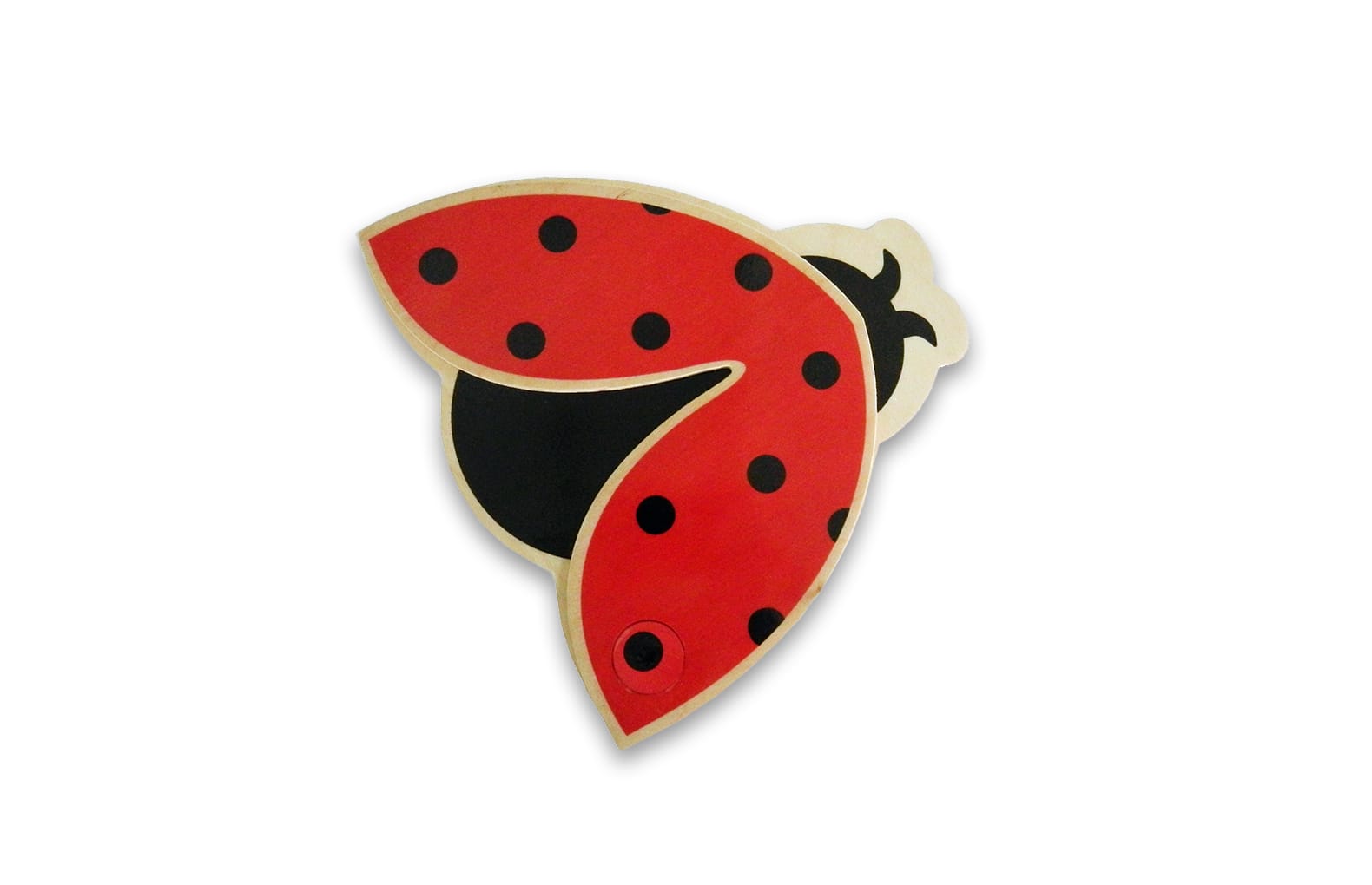 Божьи коровки сделаны из натуральной березовой фанеры и имеют магнитное крепление, к которому при помощи магнита можно прикрепить рисунок. А с обратной стороны предусмотрен разъем, в который можно вставить трос.