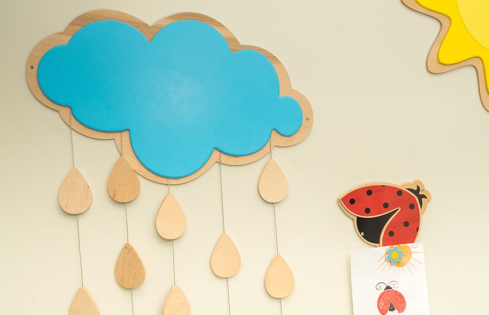 Элементы композиции можно использовать как оборудование для размещения детских рисунков, так и просто как декор интерьера.