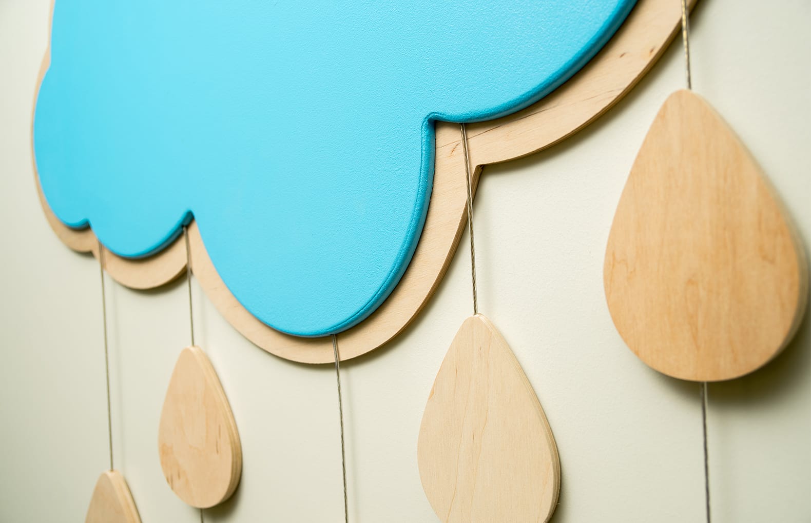 На тросах с капельками Вы можете разместить рисунки или фотографии при помощи декоративных прищепок.