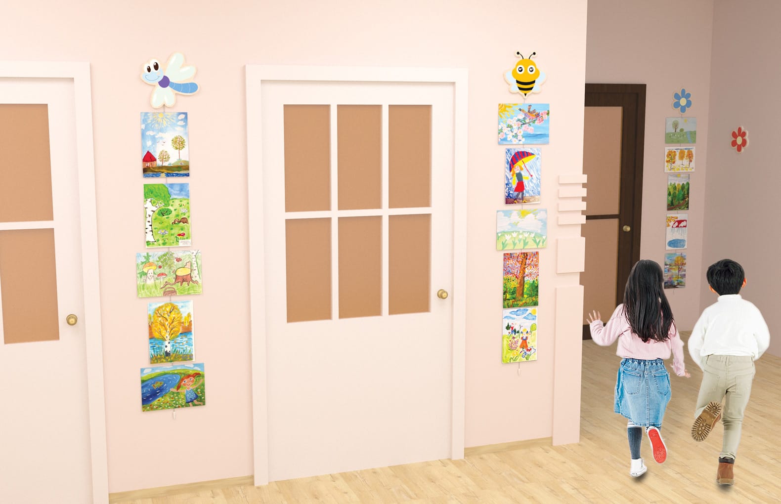 Система подвеса позволит эффектно разместить рисунки и фотографии.