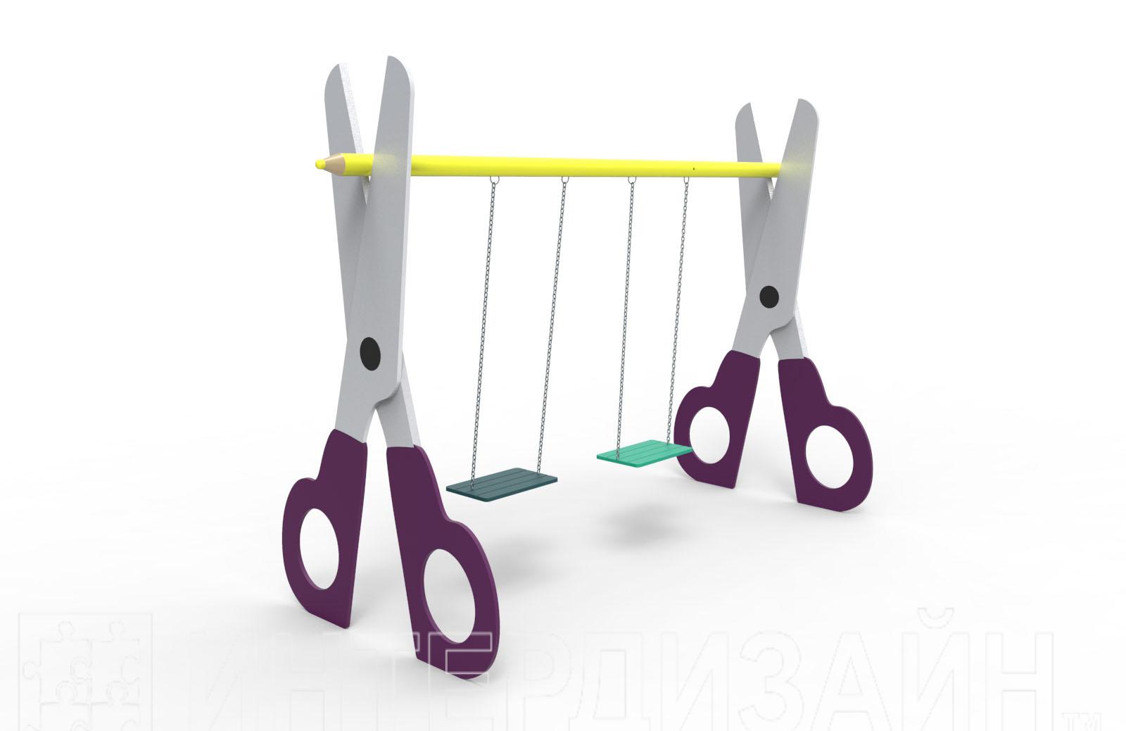 Качели "Ножницы" непременно привлекут внимание ребятишек своим ярким и необычным дизайном - опорами для качелей служат «ножницы», а перекладиной – «карандаш».