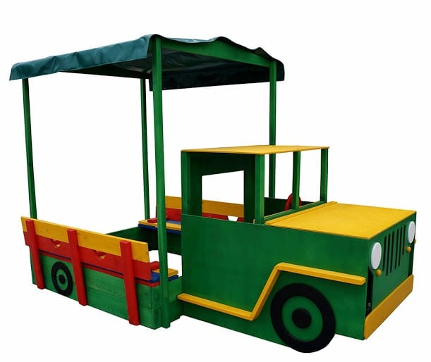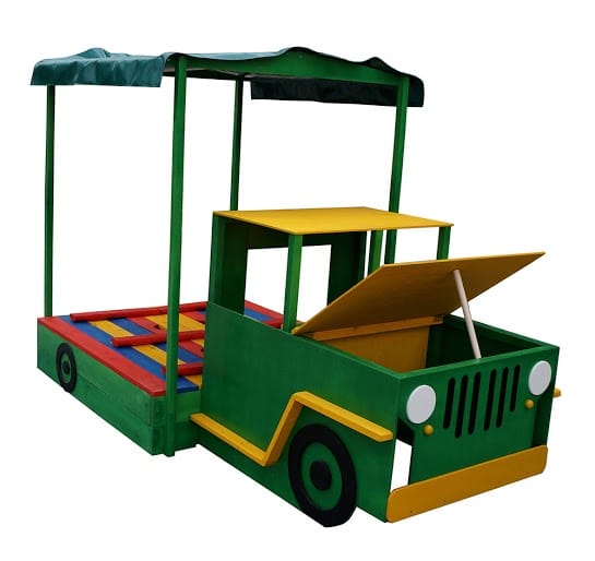 Удобные скамеечки по бокам песочницы обязательно понравятся и детям и взрослым. А кабина грузовика из прочной фанеры позволит вашему ребёнку ощутить себя в роли самого настоящего автопутешественника.
