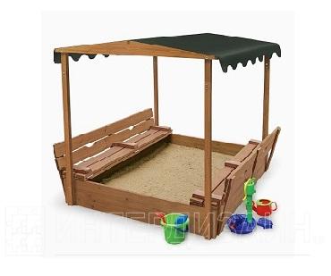 Песочница деревянная с навесом и лавочками 4 11423
