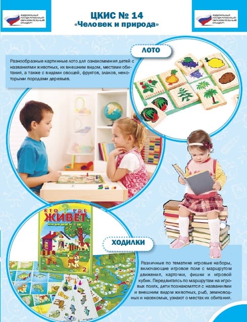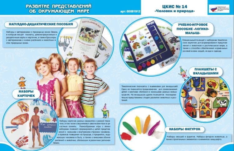 Специальный планшет с наборами тематических карточек. В карточках представлены разнообразные задания, в ходе выполнения которых у детей формируются представления о животном и растительном мире, а также о способах обеспечения нормальных условий жизни людей, их еде и одежде.