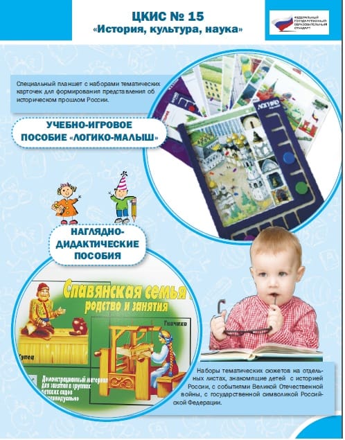 Специальный планшет с наборами тематических карточек. В карточках представлены разнообразные задания, в ходе выполнения которых у детей формируются представления об историческом прошлом России.