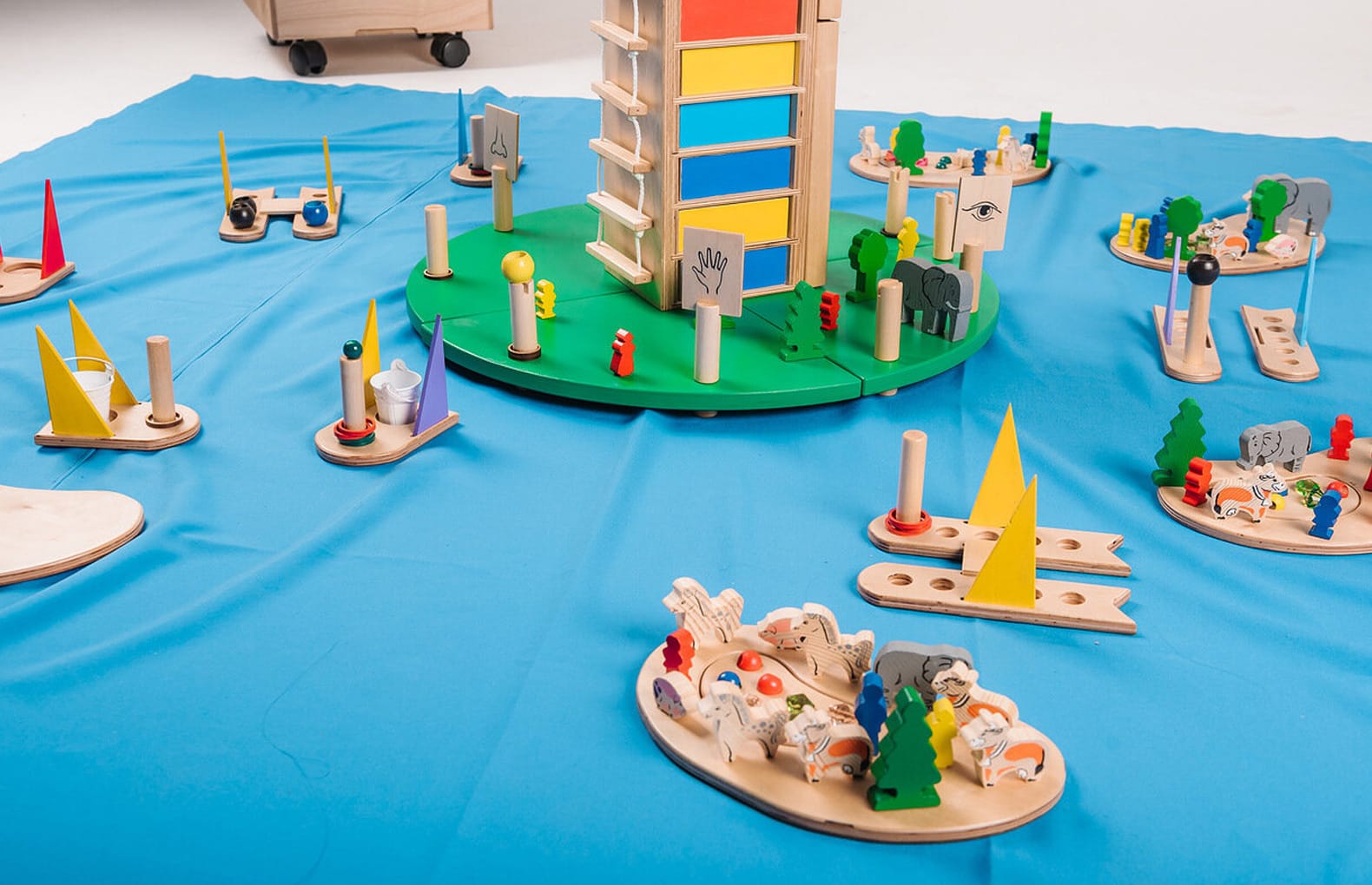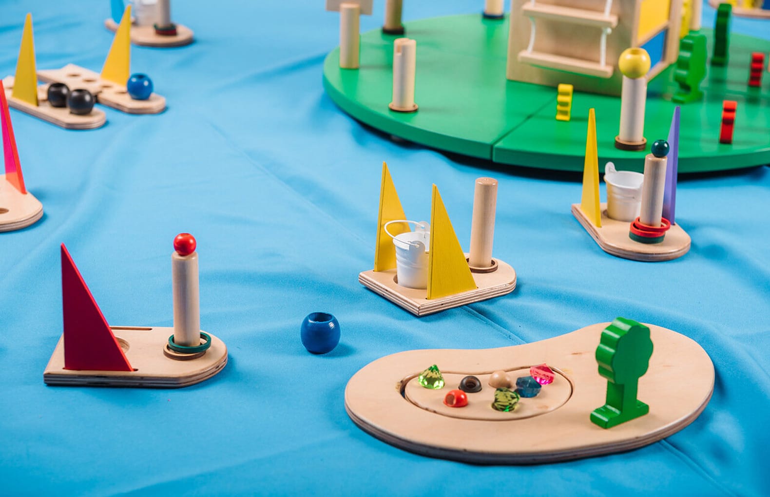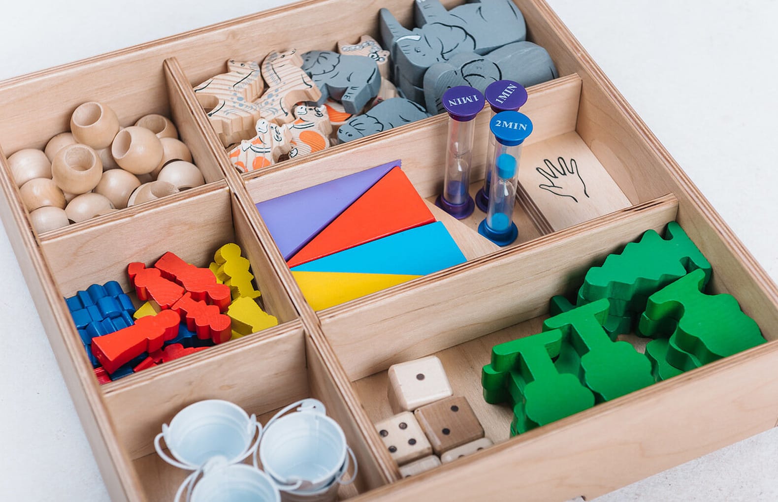 бусины, шнуровка, карты с изображениями, кубики для игры и многое другое.