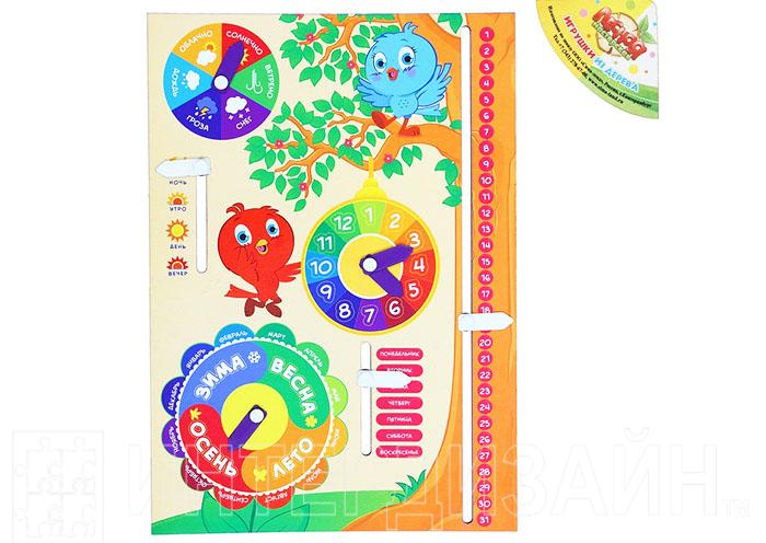 Часы календарь с бегунками "Птички" научит Вашего ребенка правильно определять время по часам, а также познакомит его с временами года, месяцами и днями недели. Игра развивает мышление, внимательность и наблюдательность.