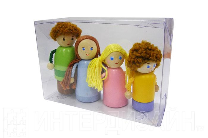 Набор включает в себя красочные куклы папы, мамы, дочки и сыночка, выполненных из дерева, с мягкими приятными на ощупь волосами. С пальчиковым театром у ребёнка развивается игровая деятельность, пространственное мышление (важные понятия «вправо», «влево»).