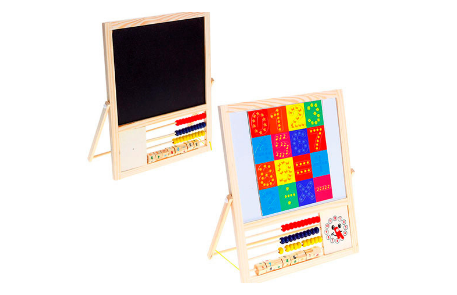 Двухсторонняя доска на подставке поможет Вашему малышу освоить навыки письма, счета и рисования. Одна сторона доски предназначена для рисования мелом, а вторая - для рисования водными маркерами и обучения числам.