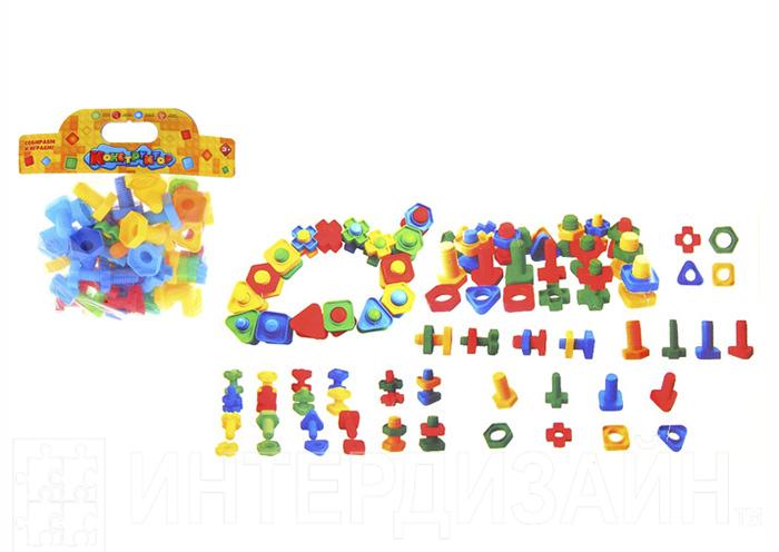 Представляет собой набор из болтов и гаек четырех основных цветов. Также болты и гайки представлены четырьмя геометрическими фигурами: квадрат, треугольник, крестик и шестиугольник. Конструктор развивает моторику рук, внимание, усидчивость, помогает в изучении цвета и геометрических фигур.