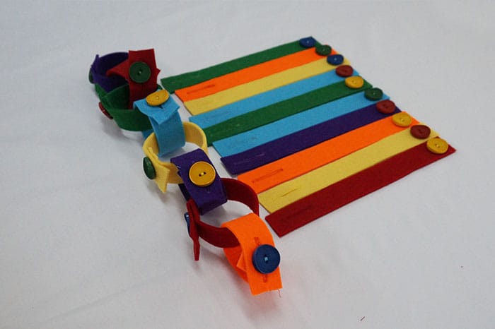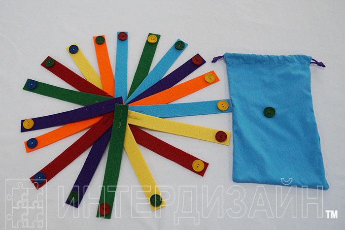 Фетровые полоски с пуговицами, помогут развивать малышу мелкую моторику. Полоски имеют свойство застегиваться на пуговки различных цветов