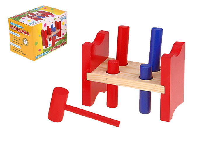 Интересная и увлекательная развивающая игра подойдет даже для самых маленьких деток. Комплект состоит из деревянного основания с цилиндрами и деревянного молоточка. Сначала нужно выбить молоточком гвоздики с одной стороны, а потом, перевернув стучалку, - с другой. Такая игра развивает у деток координацию движений, мелкую моторику, внимание, целеустремленность и логическое мышление.