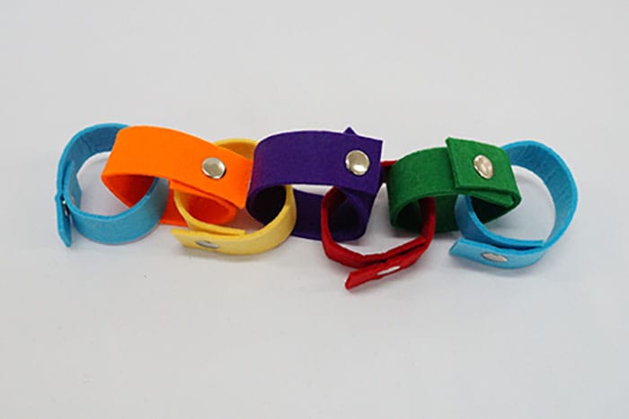 Фетровые полоски с пкнопками, помогут развивать малышу мелкую моторику. Полоски имеют свойство застегиваться на кнопки различных цветов