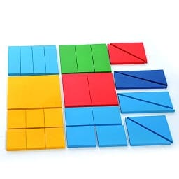 Пособие дробные части круга развивают навыки устного счета и облегчают усвоение дробей. Набор деревянных пластин квадратной формы, которые могут разделяться на 2,3,4 и 6 частей. Деление квадрата на 3 части можно осущестивить прямоугольными пластинами или треугольниками, на 4 части — треугольниками, квадратами или прямоугольниками, на 6 частей — только прямоугольниками. Упакован в квадратную коробку.