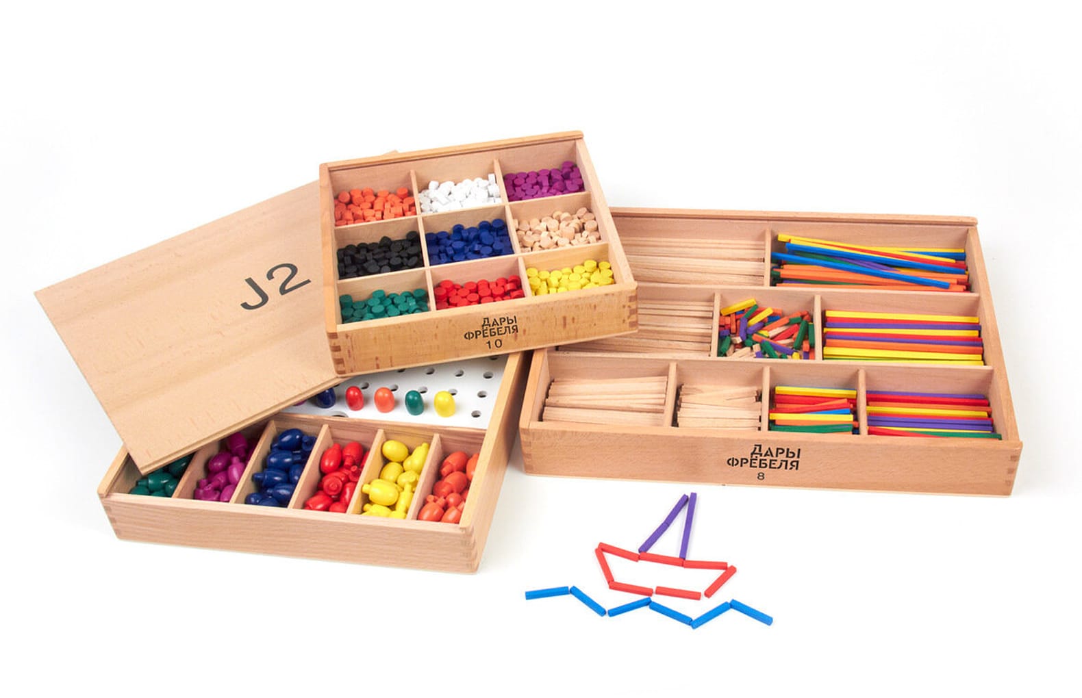 Набор от официального производителя сделан по методике немецкого педагога Фридриха Фребеля. Данный комплекс соответствует ФГОС ДО и программе «Доступная среда». Детали сделаны из натурального дерева.