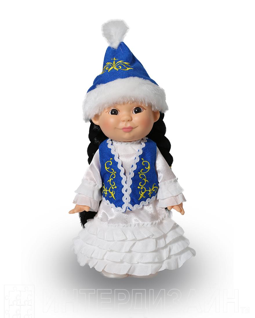 Кукла Веснушка Весна в казахском костюме (девочка) может стать настоящей подружкой для ребёнка. Это кукла, одетая в стилизованный казахский народный костюм. Костюм состоит из шёлкового платья, шапки конической формы, из ворсового трикотажа, с околышем из искусственного меха, жилетки из ворсового трикотажа с вышивкой. Комплект дополнен туфлями. Производитель оставляет за собой право изменения цветовой гаммы одежды и волос куклы. Игровые и дидактические возможности куклы: Веснушка Весна в казахском костюме (девочка) может быть так называемой «методической куклой» для обучения детей культурным и национальным особенностям. Наличие элементов одежды, которые легко снимаются и надеваются, разнообразит возможности сюжетно-ролевых игр с этой куклой, в процессе которых развивается мелкая моторика и творческое воображение ребёнка. Прекрасные прошитые волосы из качественного нейлона, похожие на натуральные, можно завивать, расчёсывать, укладывать в разные причёски, меняя образ куклы. Рост куклы 25,5 см.