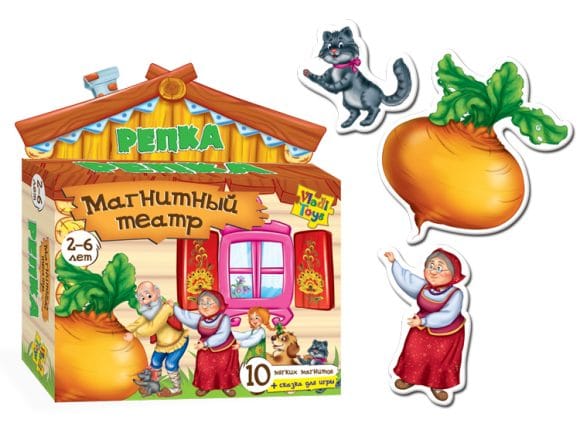 В комплект входят 6 магнитных театров по мотивам народных сказок: