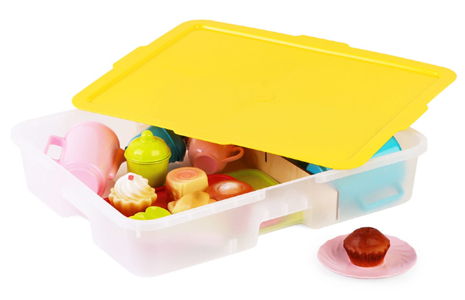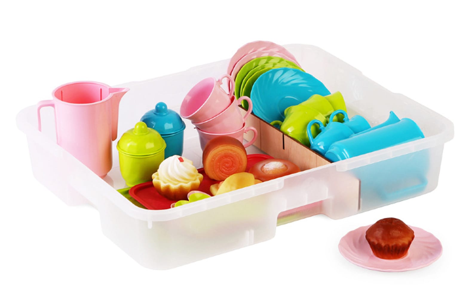 В комплекте:43 предмета: детская посуда для сервировки стола, десерты, контейнер игротека №1