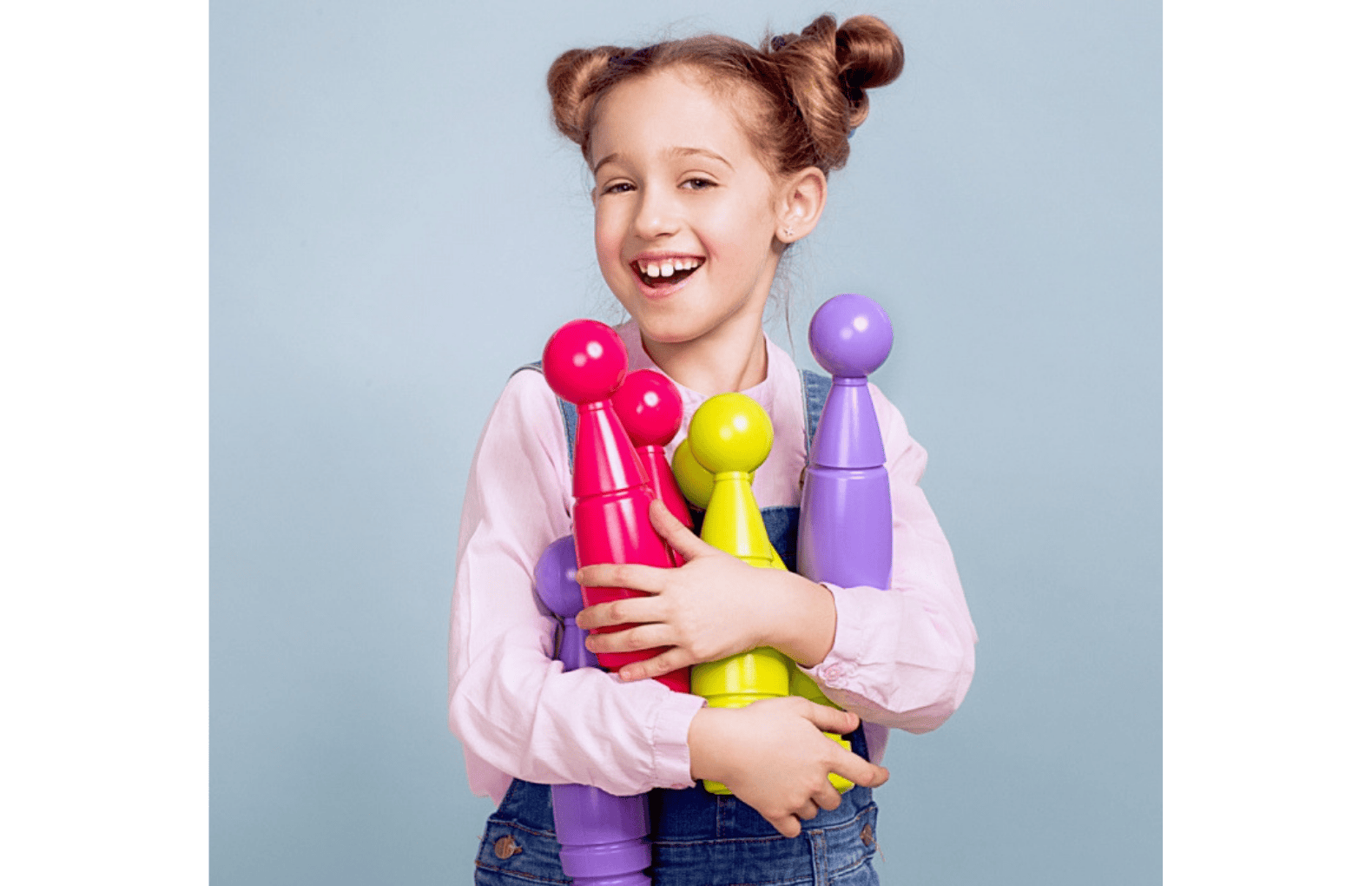 В комплекте27 кеглей / 3 держателя / 6 мячей