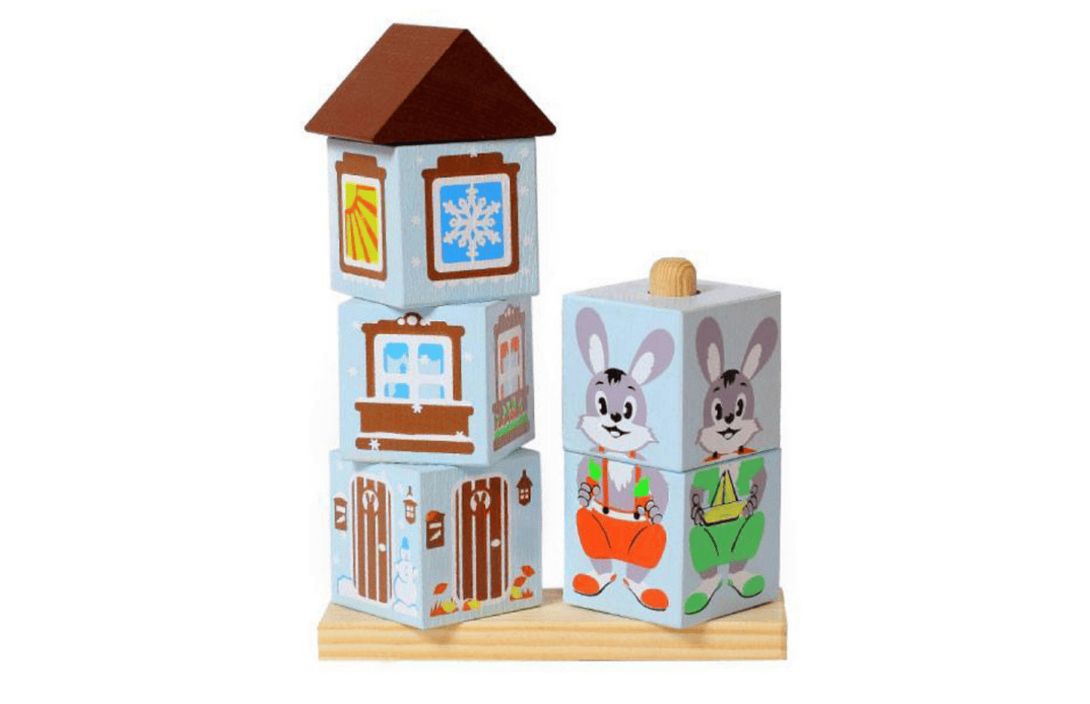 КОМПЛЕКТ ДЕРЕВЯННЫХ КУБИКОВ НА СТЕРЖНЕ (5 видов) - Описание