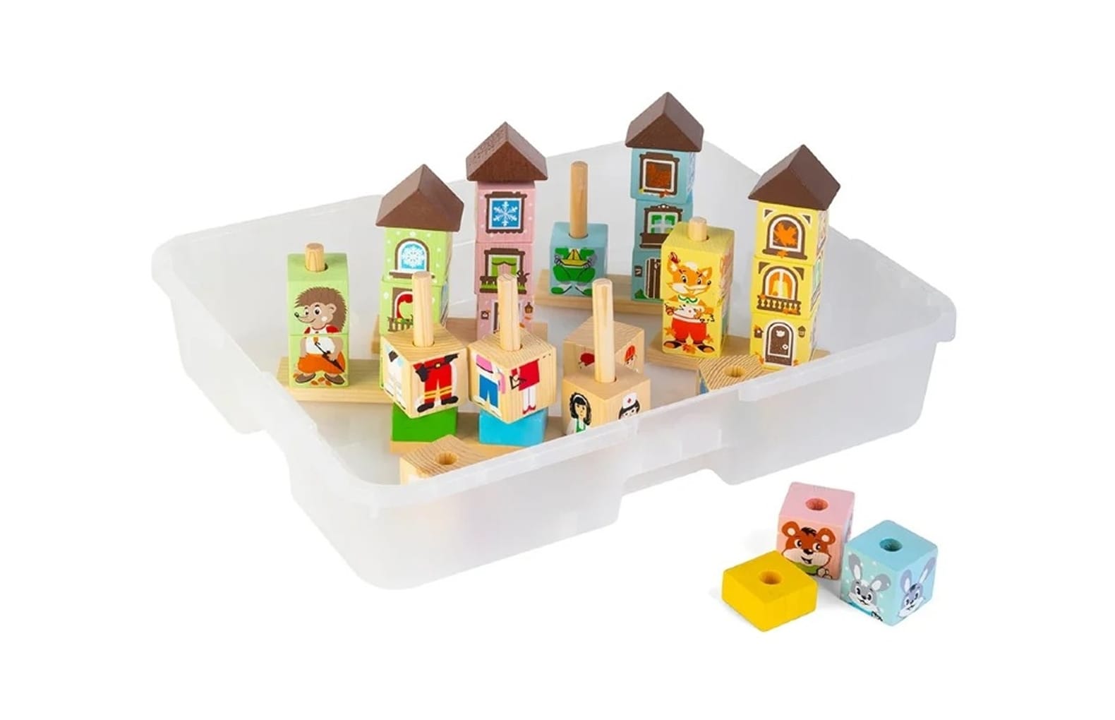 Дидактический материал для развития мелкой моторики и логического мышления дошкольников младших и средних групп ДОО. Состоит из 5 комплектов (кубики на стержне): лисенок, зайчонок, ежик, медвежонок, профессии. Материал: дерево. Контейнер Игротека №1.