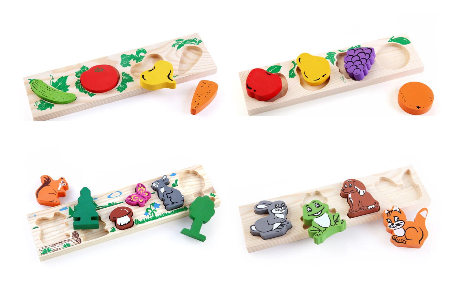 Игровой материал для развития мелкой моторики и логического мышления для средних и старших групп ДОО. Состоит из 8 комплектов вкладышей с тематическими изображениями. Тематика: окружающий мир. Материал: натуральное дерево. Контейнер Игротека № 1.
