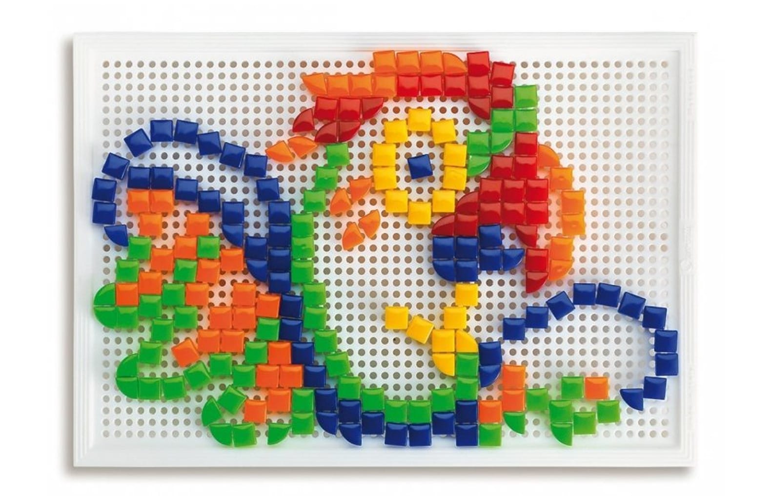 Фигурная настольная мозаика - отлично зарекомендовавший себя развивающий материал в оригинальном исполнении для досуга дошкольников средних и старших групп. Основная игровая задача — составить из разноцветных деталей фантазийное изображение — дополнена новым функционалом. Детали мозаики выполнены в форме квадратов и треугольников, что, с одной стороны, делает задачу немного более сложной, а с другой - дает новые возможности для творчества и фантазии ребенка. С целью сохранности всех элементов набора после игры детали необходимо хранить в специальном контейнере, входящем в комплект.