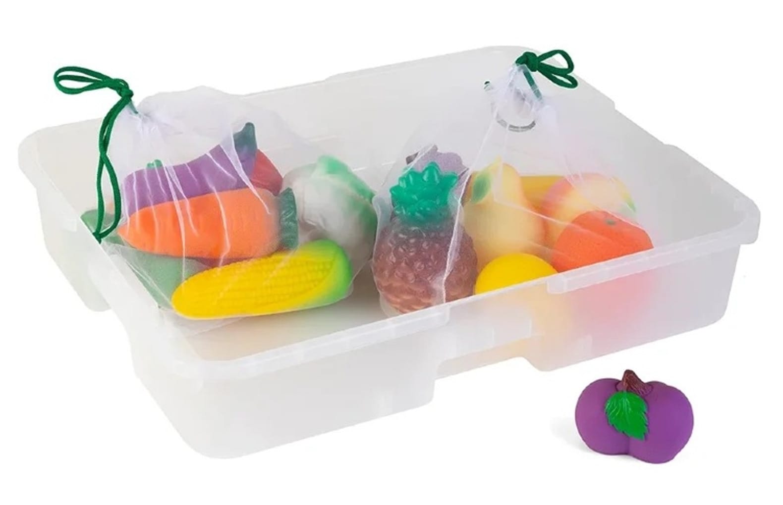 Развивающий игровой материал для ролевых игр и коллективного досуга дошкольников всех возрастных групп ДОО. Состоит из 16 предметов: овощи и фрукты. Материал: ПВХ. Контейнер Игротека №1.