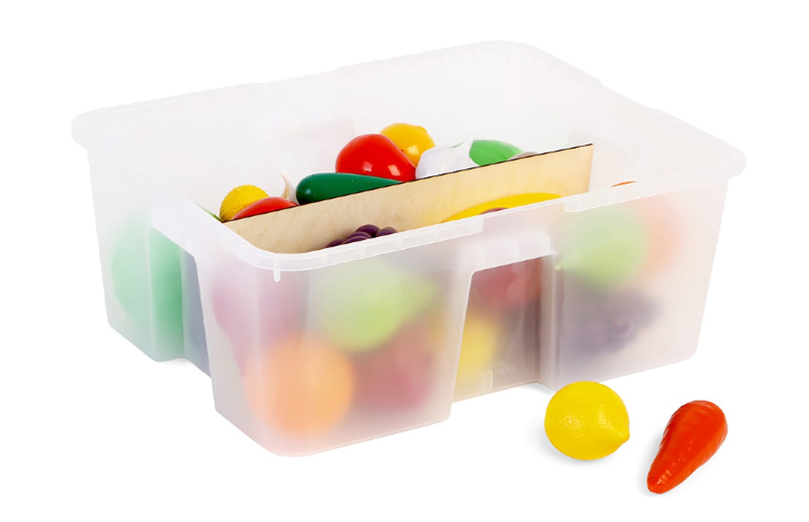 В комплекте:34 предмета: овощи и фрукты, контейнер Игротека №2.