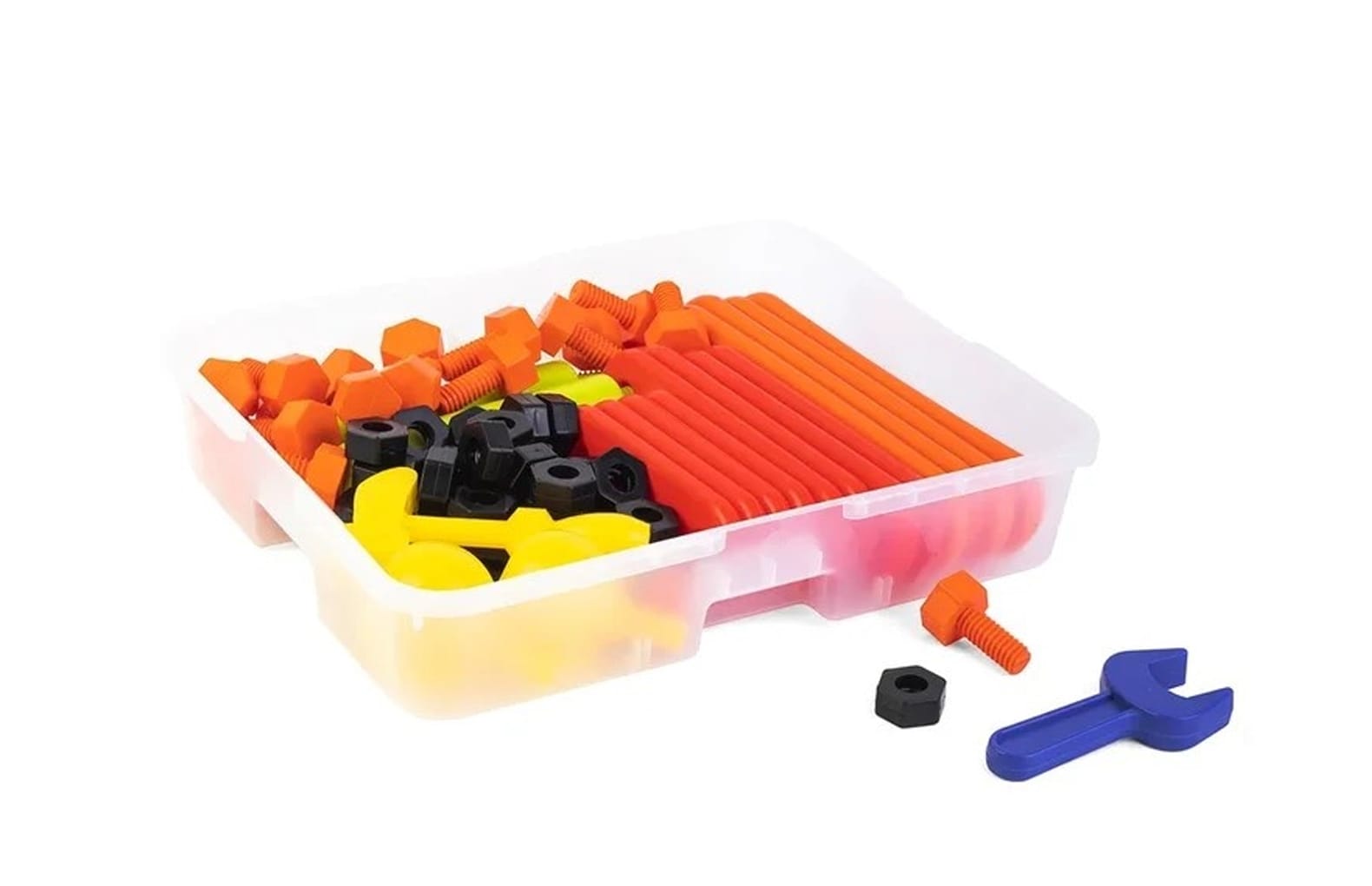 Конструктор для развития мелкой моторики рук и объемно-пространственного мышления дошкольников средних и старших групп ДОО. Состоит из 60 деталей: планки с отверстиями, болты, колеса, гайки, инструменты. Материал: пластмасса. Контейнер Игротека №1.