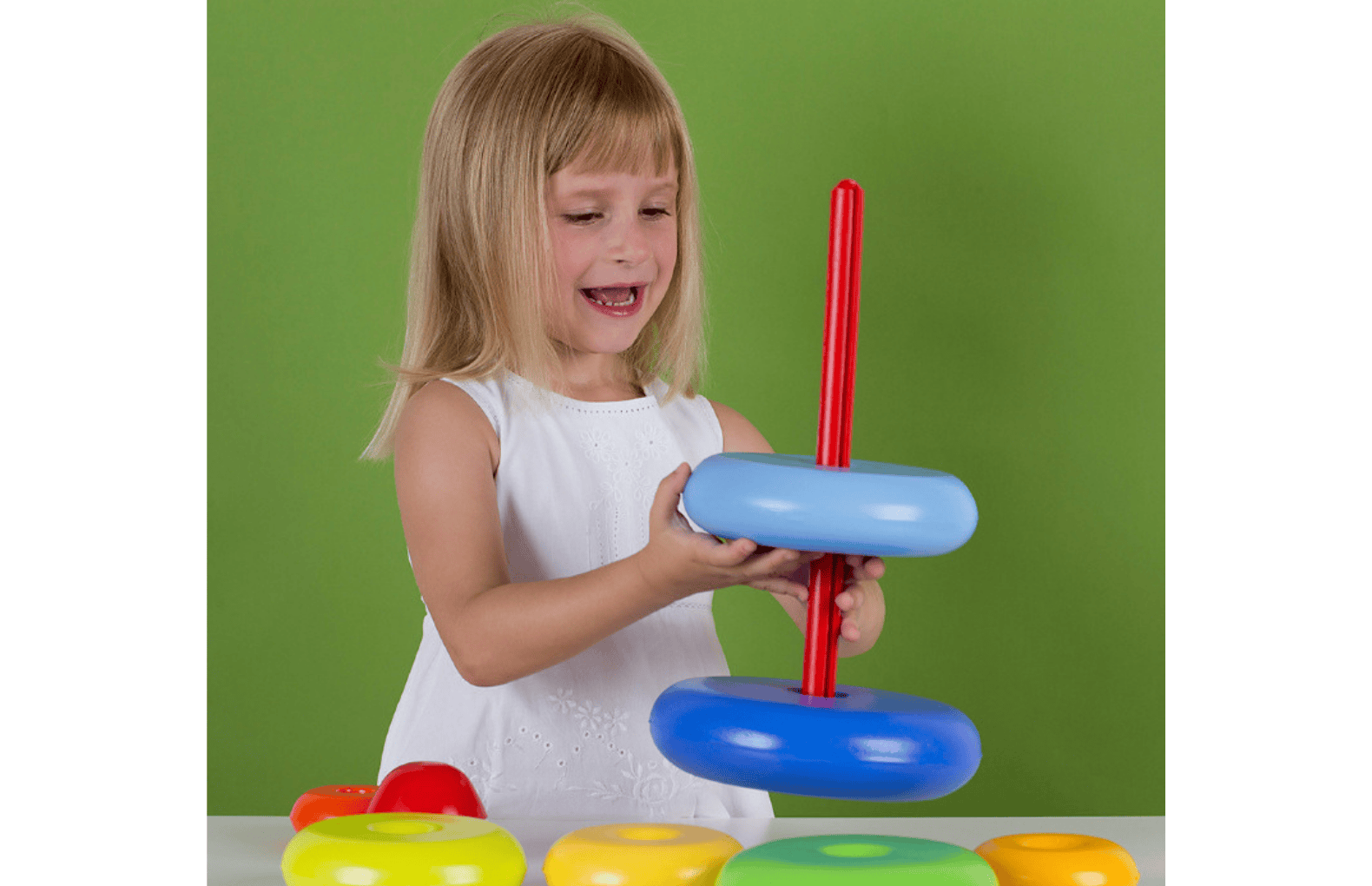 Игрушка обладает высокой устойчивостью и удобством сборки, поэтому рекомендована для дошкольников младших групп ДОУ от 1 года. Яркие и объемные кольца легко надевать на стержень, что делает игру доступной и интересной для игр в домашних условиях, а также для занятий в детских центрах.