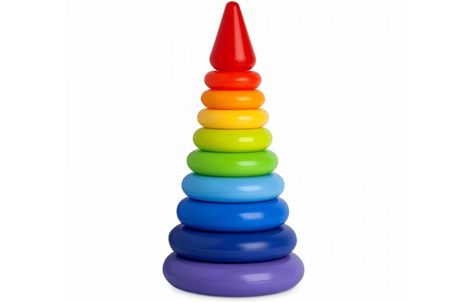 Уникальная коллекция пирамид классической формы, каждая из которых имеет на одно цветное кольцо меньше предыдущей. Комплект интересен тем, что любая его составляющая является полноценной самостоятельной игрушкой. В то же время все пирамидки в совокупности позволяют проводить с детьми уроки на развитие внимания, памяти, изучать счет, цвета и их оттенки, знакомиться с понятиями высоко — низко, большой — маленький. Часть деталей является взаимозаменяемыми.
