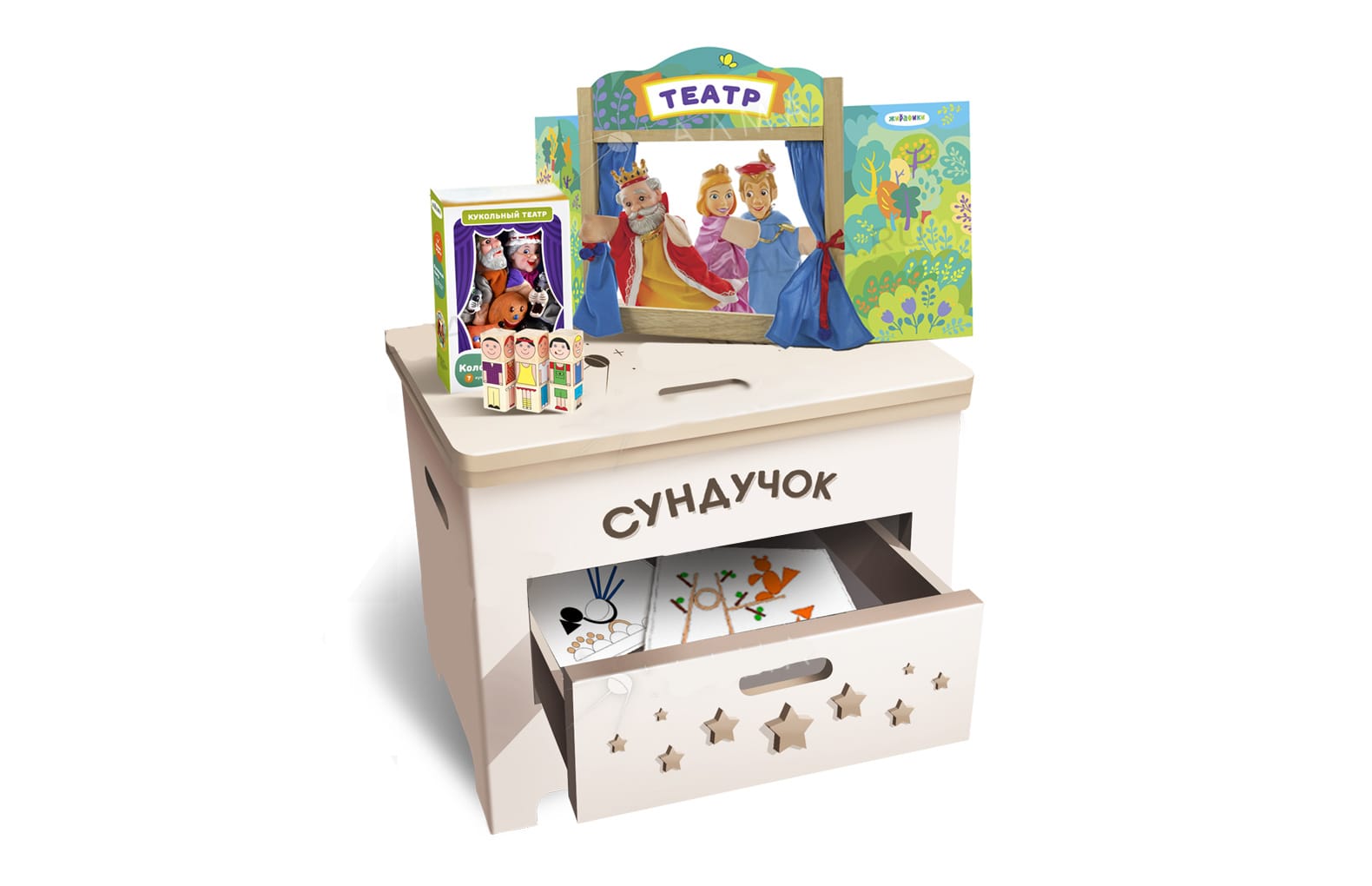 «Сундучок логопеда» нацелен на проведение интересных развивающих занятий, а также для игры в кукольный театр, практики рисования песком. В комплекте: