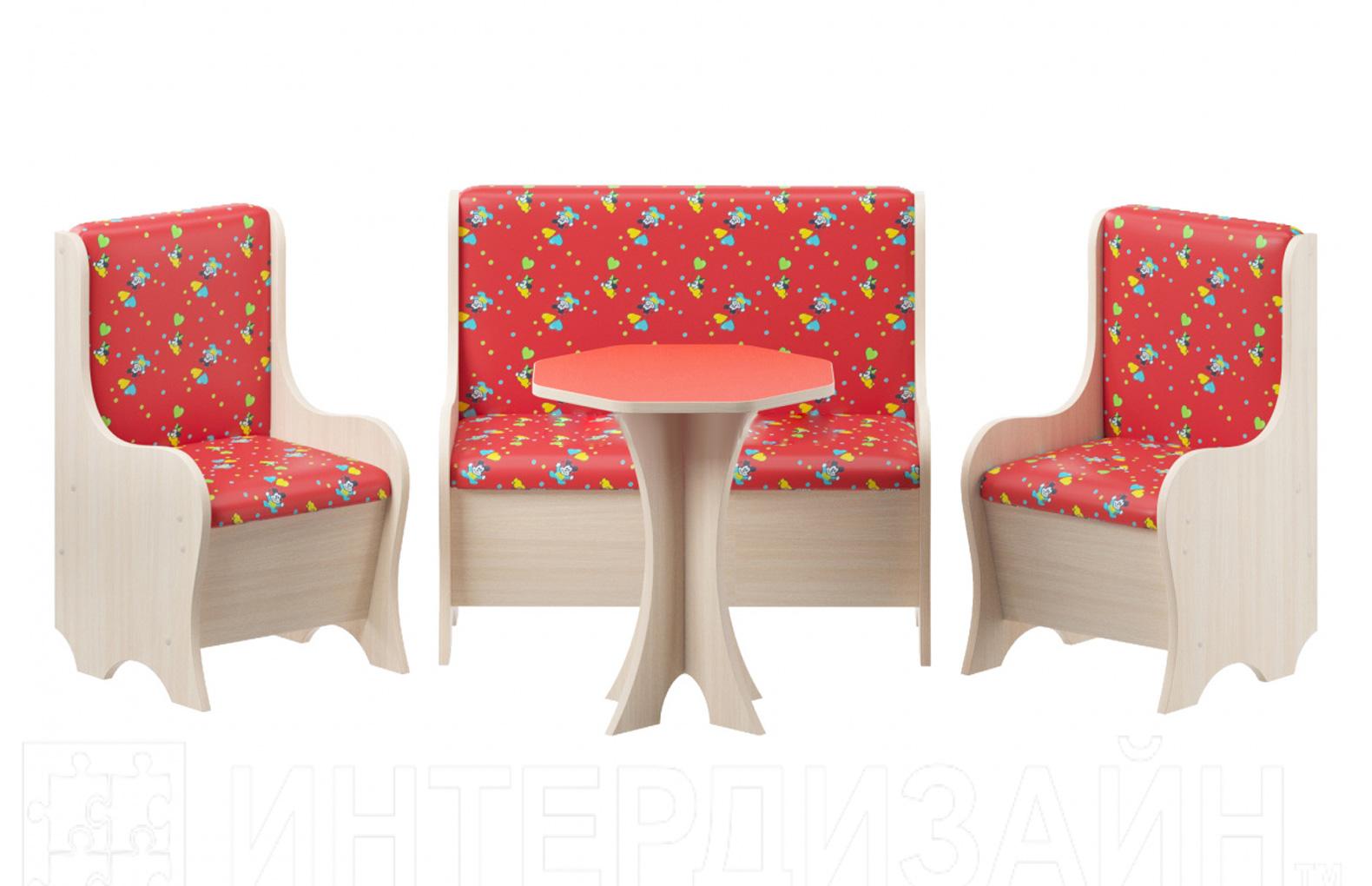 "Ягодка"уголок отдыха - это неотъемлемая часть любого интерьера. Порадуйте своего малыша набором мебели. Малыши могут собираться вместе, играть, общаться и просто читать книжки. Набор из дивана и кресел хорошо дополняет столик.