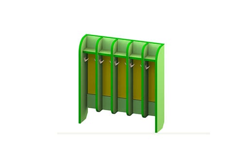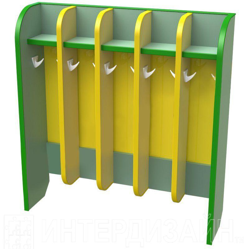 Полотеничница предназначена для комплектации детского сада, имеет секцию для полотенец. Изготовлена из качественного и прочного материала. Укомплектована крючками. Края полки закруглены, что оберегает детей от травм. Доступна в ярком сочетании фиолетового и желтого, также зеленого и желтого.