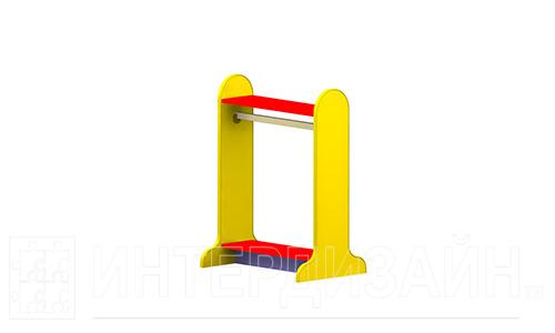 Вешалка ряжений предназначена для свободного доступа детей к костюмам и нарядам. Она компактна, устойчива, не имеет острых углов и может быть поставлена в любом месте группы. Несмотря на маленькие размеры, позволяет уместить большое количество нарядов, включая головные уборы и обувь.